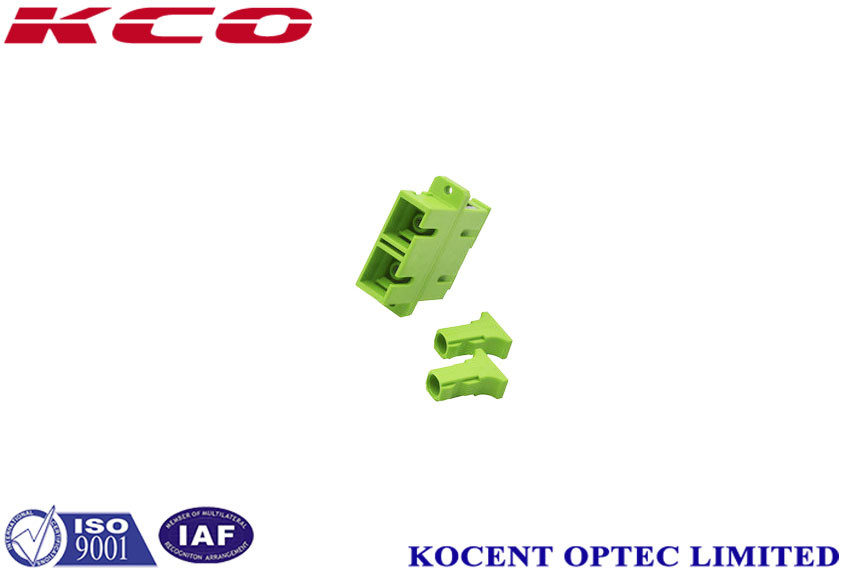 Adaptateur optique en fibre verte SC/APC avec bride, avec capuchon anti-poussière, duplex
